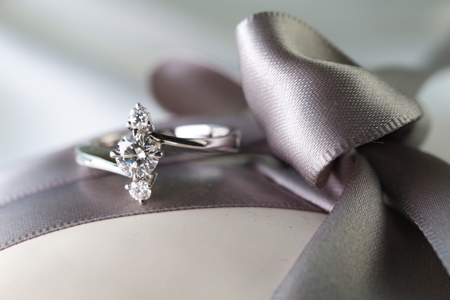 H&E《菱格》三鑽菱格型滾珠鑽石戒指