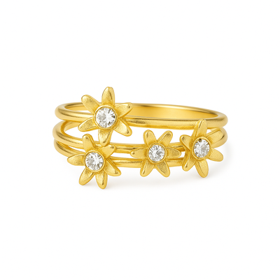 這款H&E《輕珠寶》跳舞花束戒指,將四朵花設計在一起做成一把花束的造型,每一個環皆為活動式,可以自由調整花朵的方向角度,讓花朵如同在指間跳舞一般靈巧可愛。